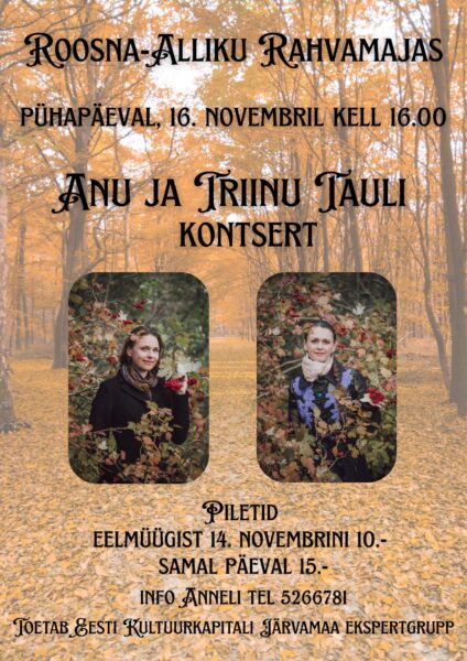 Roosna-Alliku Rahvamaja Pargi 10, Roosna-Alliku alevik, Paide linn Kultuurikorraldaja: Anneli Karma Telefon: 5266781